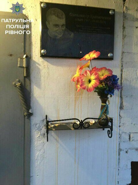 61-летний ровенчанин забросал яйцами памятную доску герою Небесной Сотни Александру Храпаченко на улице Волынской Дивизии, сообщили в пресс-службе полиции Ровно.
