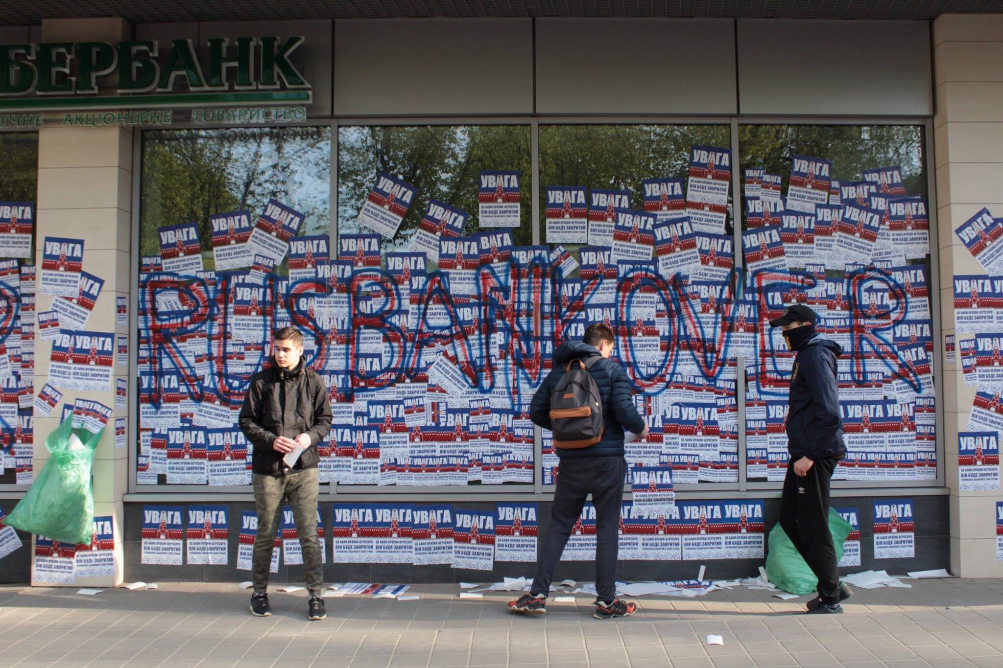 Активисты бессрочно заблокировали Сбербанк во Львове