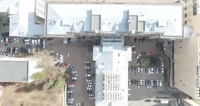 В начале рабочего дня через шлагбаум КГГА, оснащенный камерами, охраной и суровым фейс-контролем, спешат авто, но не простые, а сплошной поток из Porsche Cayenne, Lexus и «кубиков». Проехал даже автомобиль с номером «танк». Но пускают на парковку мэрии далеко не всех, потому что это самая тайная парковка среди всех парковок госструктур. Она расположена во внутреннем дворе КГГА и окружена домами. Это позволяет сделать ее недоступной для «лишних» взглядов.