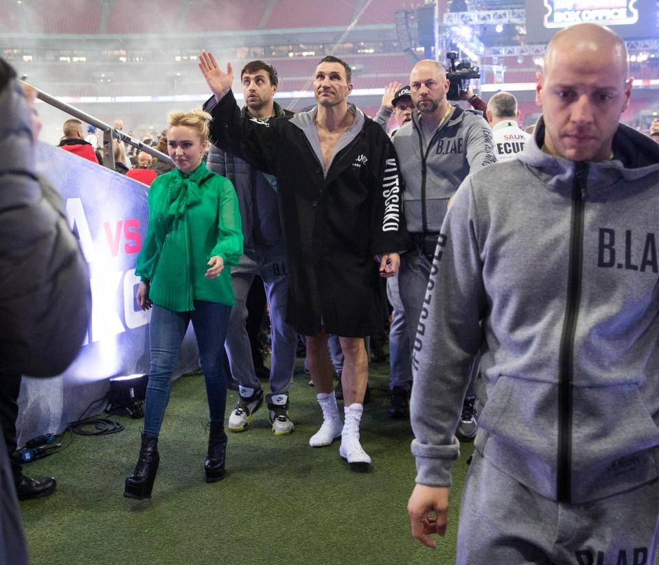 Отметим, что Хейден присутствовала и на самом поединке, поддерживая своего жениха. Она сопровождала украинского боксера и тогда, когда тот покидал арену. Фото: Владимир Кличко и Хейден Панеттьери