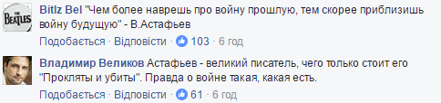 "Астафьев - великий писатель, чего только стоит его "Прокляты и убиты". Правда о войне такая, какая есть", - написал Владимир Великов.