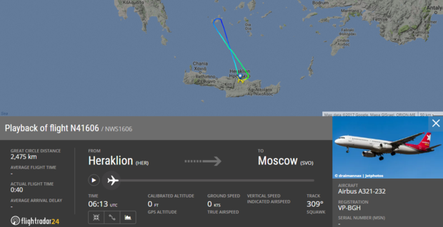 Самолет российской авиакомпании "Северный ветер" не смог долететь до Санкт-Петербурга. Вскоре после вылета из греческого города Ираклиона борт едва не рухнул, но в итоге пилотам удалось выровнять курс и вернуться обратно в аэропорт вылета.