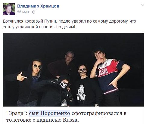 Владимир Храмцов иронизирует: "Дотянулся кровавый Путин, подло ударил по самому дорогому, что есть у украинской власти - по детям!"