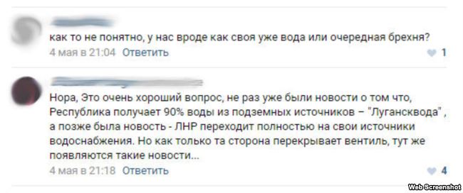 После электроэнергии группировки «ЛНР» и «ДНР» могли остаться и без воды. Украина поставляет воду в Луганск с двух основных водозаборов: с Западной фильтрованной станции в районе Лисичанска и Петровского водозабора в Станично-Луганском районе. По заявлениям сепаратистов, в 2017 году они договорились с украинской стороной о поставке воды на территорию, временно подконтрольную группировке «ЛНР». Но, по их словам, Киев постоянно без предупреждения прекращает подачу воды.