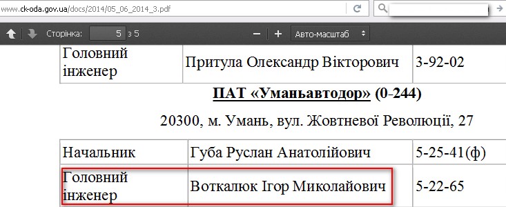 Відхилений у цих торгах конкурент облавтодору, ТОВ «ШРБУ-48», доволі юне підприємство - зареєстроване у червні 2015 року в Умані. Його керівником, згідно з даними YouControl, з 01.03.2016 є Ігор Воткалюк. До цього цей пан обіймав посаду головного інженера ДП «Уманьавтодор».