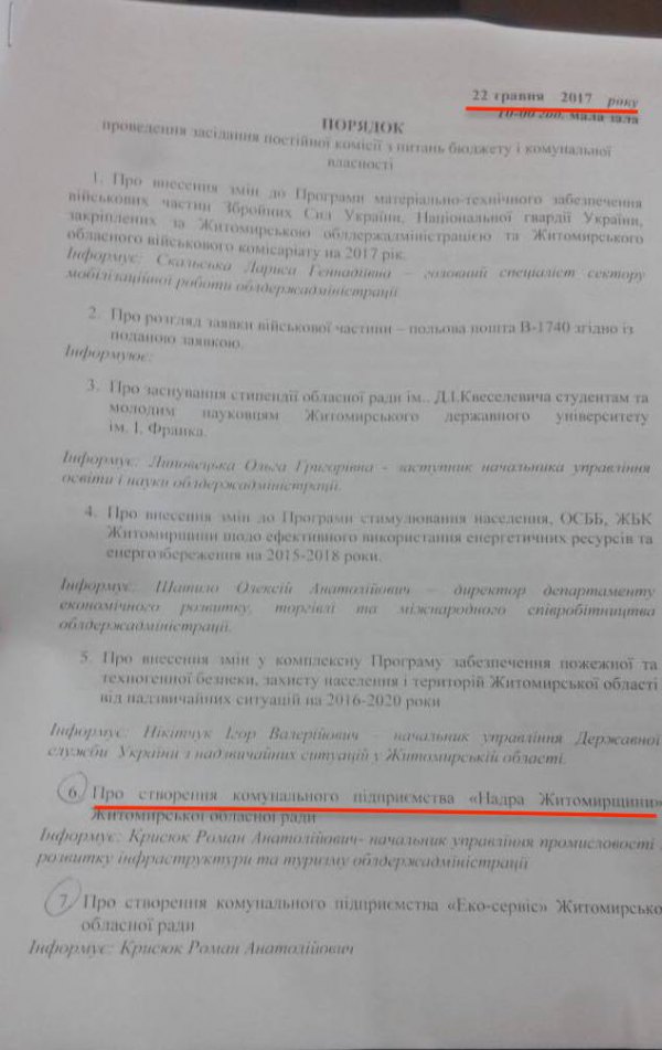 P.S. Сьогодні, 22 травня, депутати облради підтримали ідею створення комунального підприємства "Надра Житомирщини", що може стати черговою корупційною "годівничкою" для нечистих на руку чиновників. Далі буде...