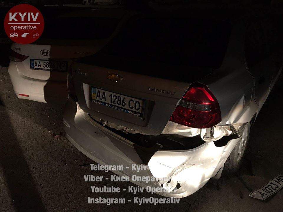 Поздно ночью 27 мая на улице Луценко авто Toyota Camry, г.н. AA0023MO, врезался в припаркованный Chevrolet.