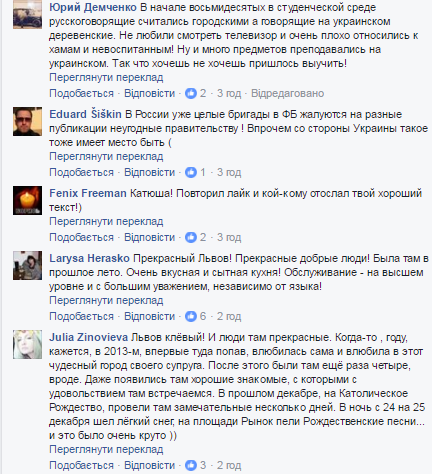 Друзья и подписчики эмигрантки поддержали ее восхищение Львовом и поделились своими впечатлениями от посещения города.