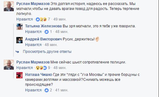 Татьяну Мармазову внезапно решили выдворить из России в Украину. Муж Руслан тут же забил тревогу в Фейсбуке, после чего в комментариях начался настоящий праздник. Переносчики русского мира стали потешно взывать к совести и родине и комично потрясать кулачками. На запах вкусной еды сползлись тролли. Комментарии под постом можно просто разбирать на цитаты.