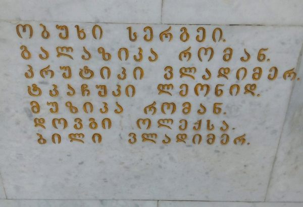 Вже дорогою в аеропорт ми заїжджаємо на тбіліську площу Героїв. На мармурових стелах викарбувані імена полеглих за свободу і незалежність Грузії. Українські імена теж: Обух Сергій, Галазика Роман, Крутик Володимир, Ткачук Леонід, Музика Роман, Длвгий Олекса, Білий Володимир...