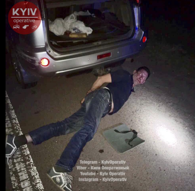 Началась погоня. Через 20 минут, на трассе Киев-Чернигов, возле села Калиновка, нарушитель потерял контроль над автомобилем и врезается в отбойник. После этого полицейские Броварского отделения полиции заблокировали его автомобиль.