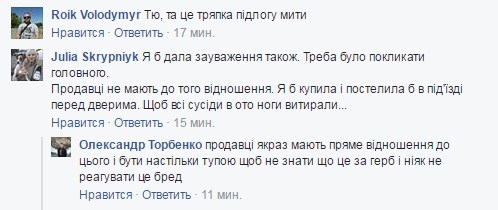 "Коломия, магазин Обнова Єврошоп. Ось такі чудові речі продаються в такій мережі. На запитання чи це нормально продавати такі тряпки, продавець зробила великі очі і запитала що тут не так? (no comments). Після моїх пояснень про герб якої країни йдеться, почув ще достойнішу відповідь - ми тут нічого не рішаєм, все залежить від керівництва", - написав він.