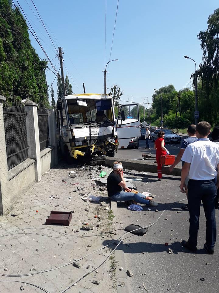 Сегодня, 11 июня, на улице Гнидавской в Луцке маршрутка №9 врезалась в столб.