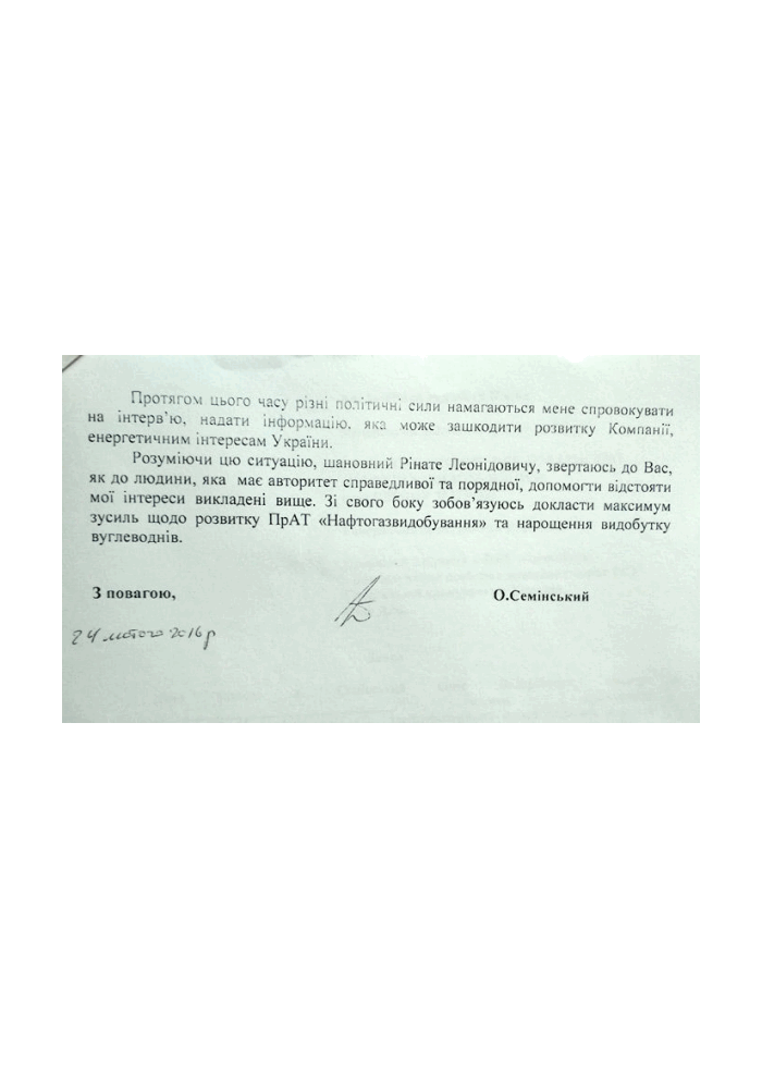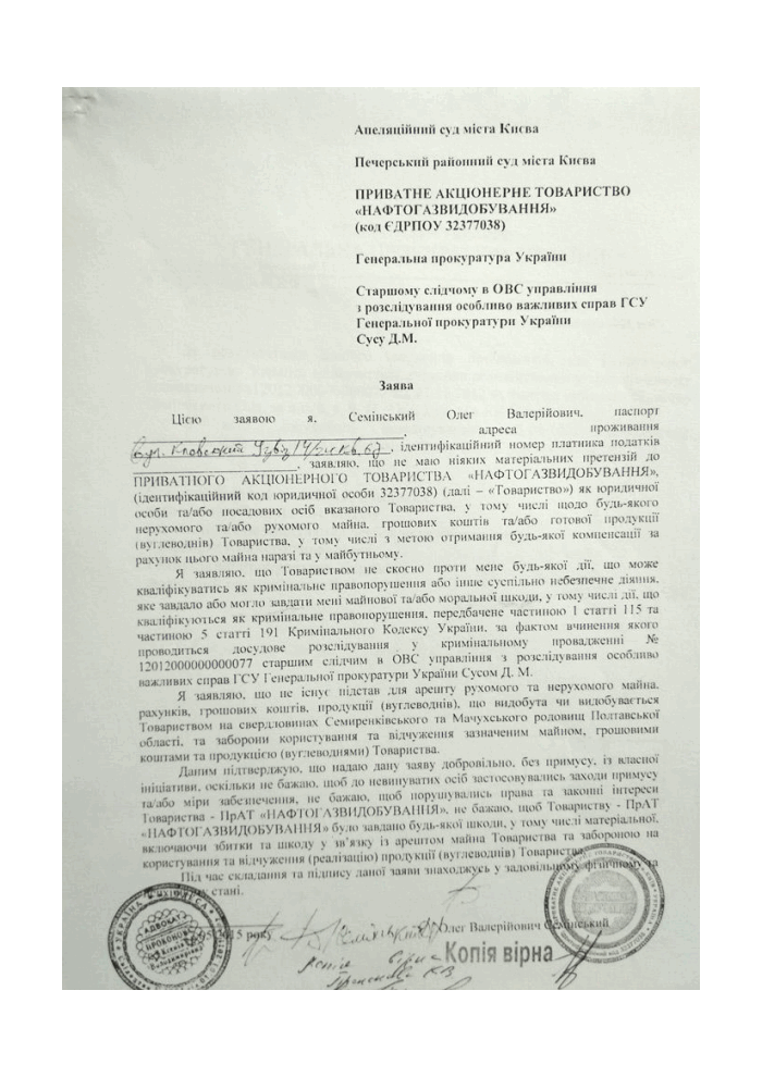— Нет. Речь именно о компании, потому что «Нефтегаздобыча» была заблокирована на основании уголовного дела по факту умышленного убийства Семинского. Поэтому Нестор мне говорит: «Давай ты подпишешь это заявление».