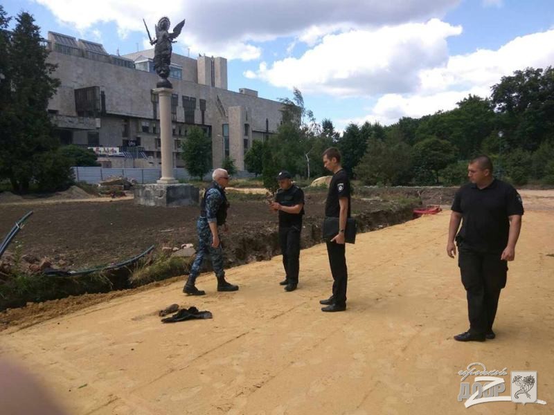 До приїзду правоохоронців предмет накрили від сонячних променів. Роботи з реконструкції саду Шевченка були тимчасово зупинені, робочі побоювалися, що вибухонебезпечний предмет міг бути не один. І їх підозри виправдалися. Прибулі на місце спепцуиалисты виявили ще й гранату Ф1 часів Другої світової війни.