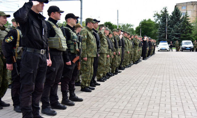 Распределение сил и средств полиции уже по традиции состоялось одновременно на главных площадях населенных пунктов Донецкой области.