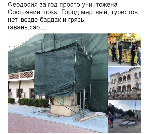 10. Феодосия за год просто уничтожена. Состояние шока. Город мертвый, туристов нет, везде бардак и грязь. Это гавань. Посмотрите, как выглядит центр оккупированного города.