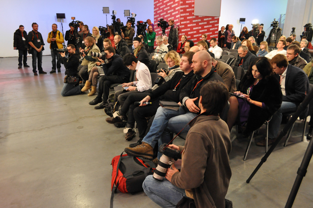 Практически полное отсутствие проверки (чтобы войти в "Мыстецький Арсенал", где был организован штаб, достаточно было просто предъявить журналистское удостоверение) почти не оставляло надежды на то, что мероприятие посетит Президент. Эта догадка подтверждалась и расписанием работы избирательного пресс-центра, в котором Петр Порошенко среди выступающих не значился.
