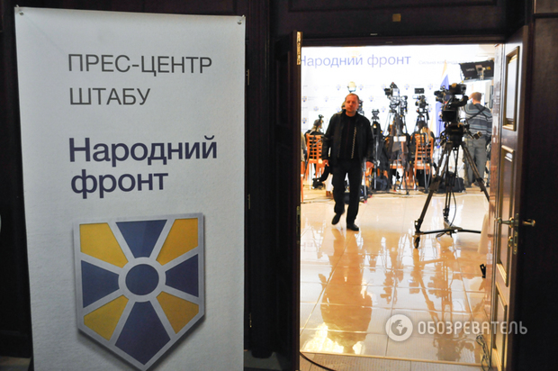 Отдельные "народнофронтовцы" периодически выходили к прессе на небольшие брифинги. Так, непосредственно перед объявлением результатов экзит-поллов, в пресс-центре появились советник министра МВД Антон Геращенко, а после – и сам министр Арсен Аваков.
