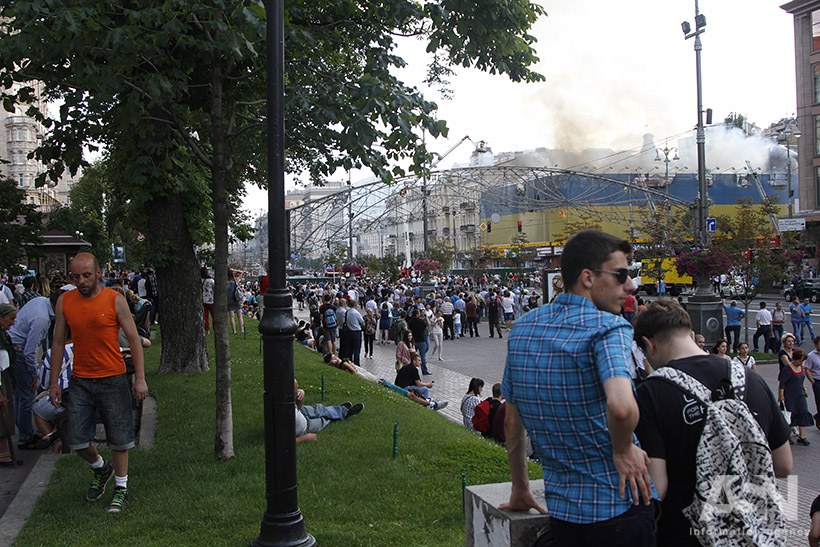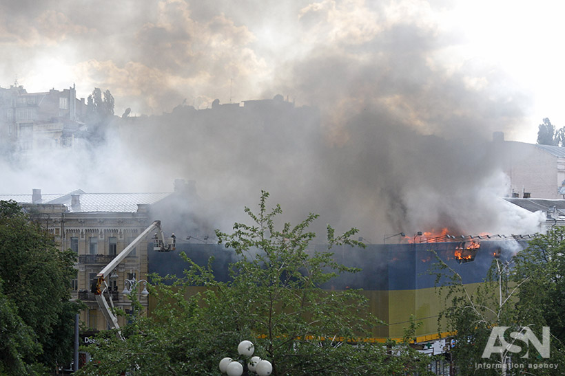 Пожар вспыхнул в здании около 17 часов 20 июня. Бывший Центральный гастроном очень быстро окутался дымом, пламя охватило весь верхний этаж и крышу. Дым от пожара затянул весь центр Киева. Точные причины возгорания пока не известны. Но пожарные говорят, что на втором этаже проводился ремонт, и там накопилось много строительного мусора.