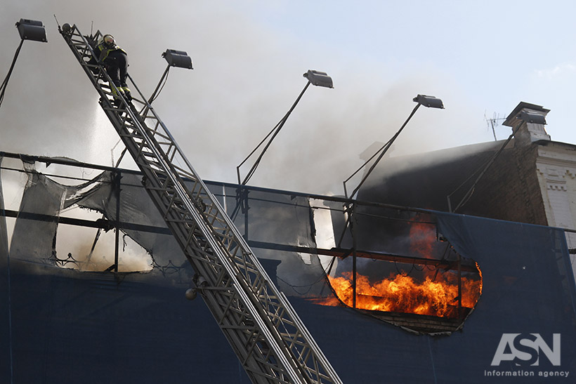 Во время пожара в здании бывшего Центрального гастронома на Крещатике выгорело 1 тыс кв.м. территории, сообщают в ГСЧС Киева. Пожар был такой силы, что мог перекинуться на соседние здания, так что пожарные стянули на тушение 18 единиц техники и 85 человек личного состава.