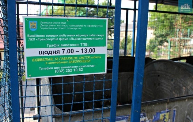 Інформаційна табличка на смітниках повідомляє, що ЛКП «Транспортна фірма «Львівспецкомунтранс» вивозить ТПВ регулярно: «Щодня 7:00-13:00», – сказано у повідомленні.