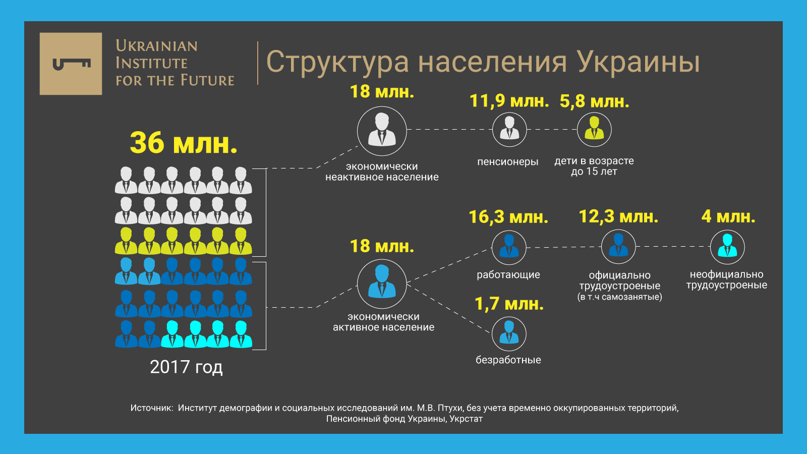 Щоб до 2030 року рівень життя українців досяг поточного рівня Словенії, Італії, Іспанії, за оцінками Українського інституту майбутнього (UIF), ВВП України повинен вирости більше ніж у 10 разів. Але чи достатньо в нас людського ресурсу для цього? Хто буде створювати валовий продукт через 5-10 років та для кого?