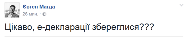 "Интересно, е-декларации сохранились???" – задался вопросом политолог Евгений Магда.