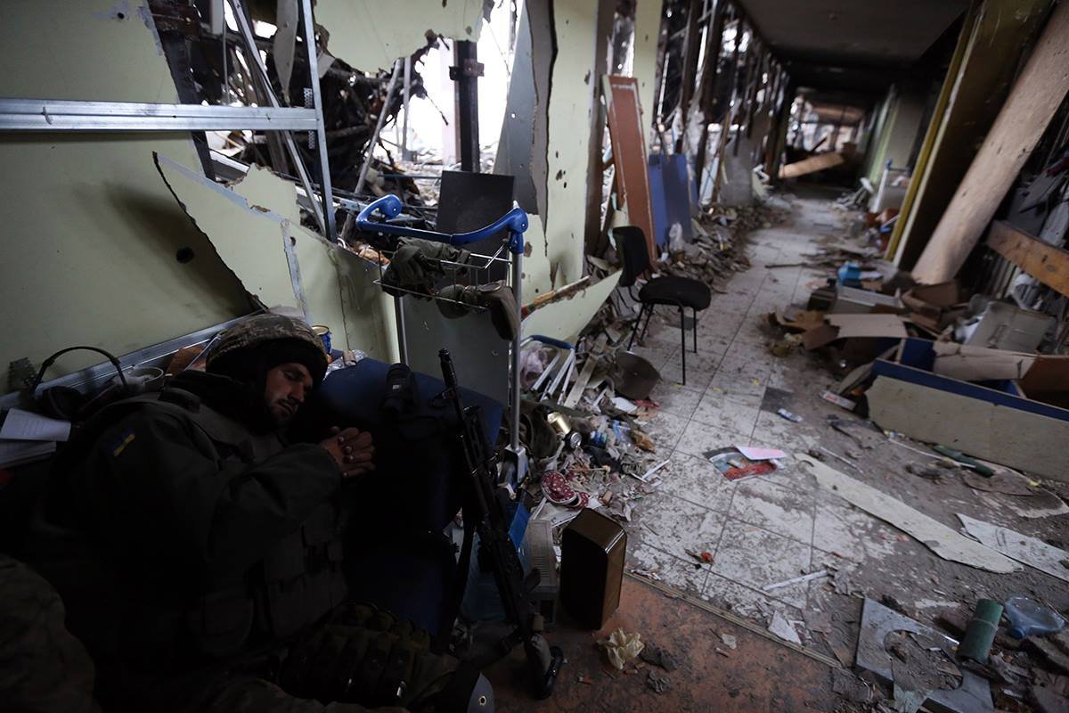 Короткий отдых украинского солдата между боями в Старом Терминале Донецкого Аэропорта.
