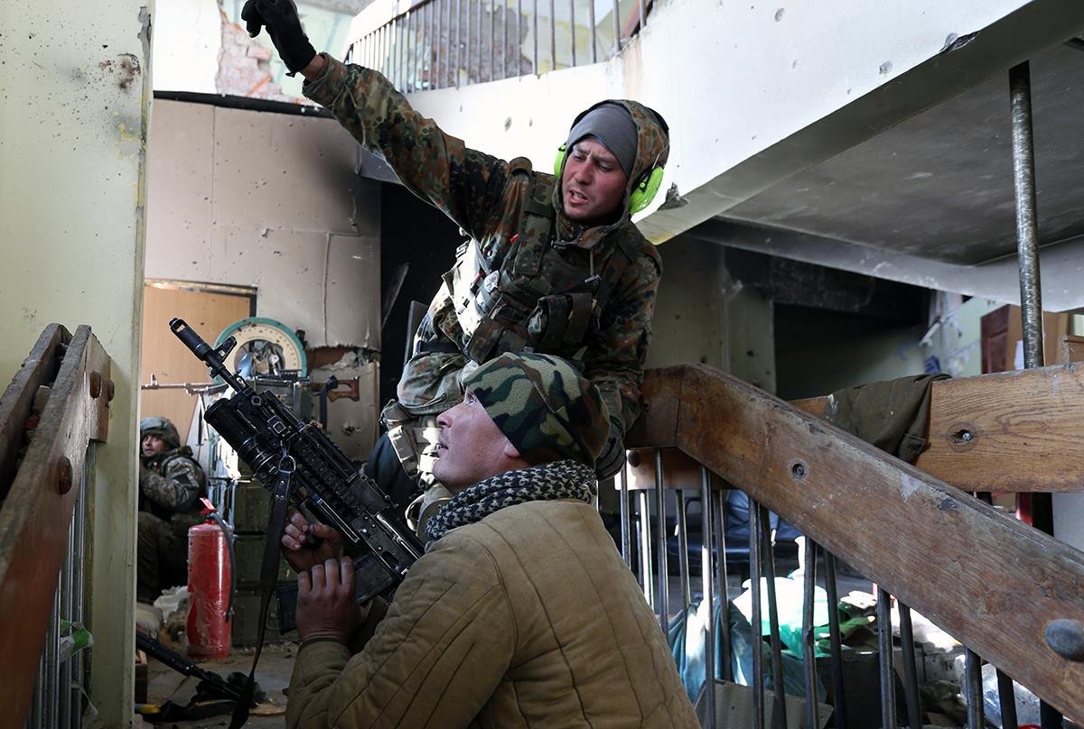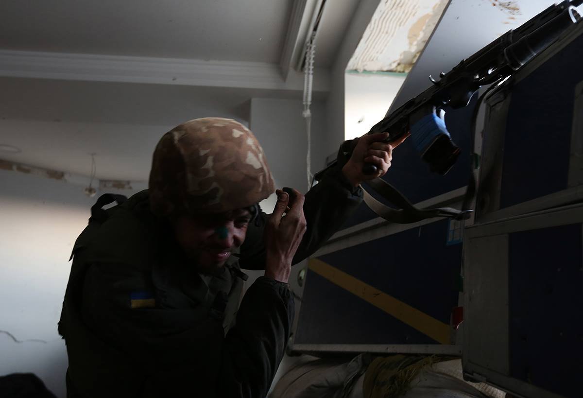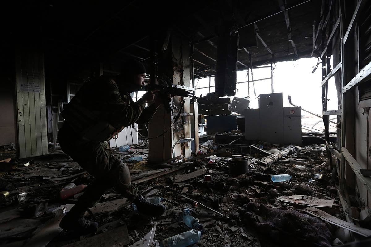 Украинский десантник во время перестрелки в Старом Терминале Донецкого Аэропорта.