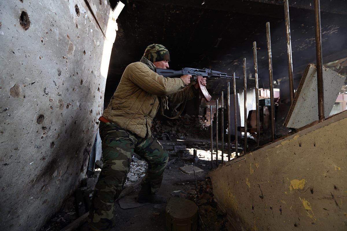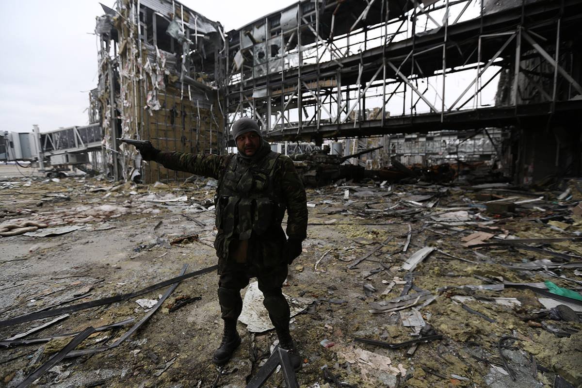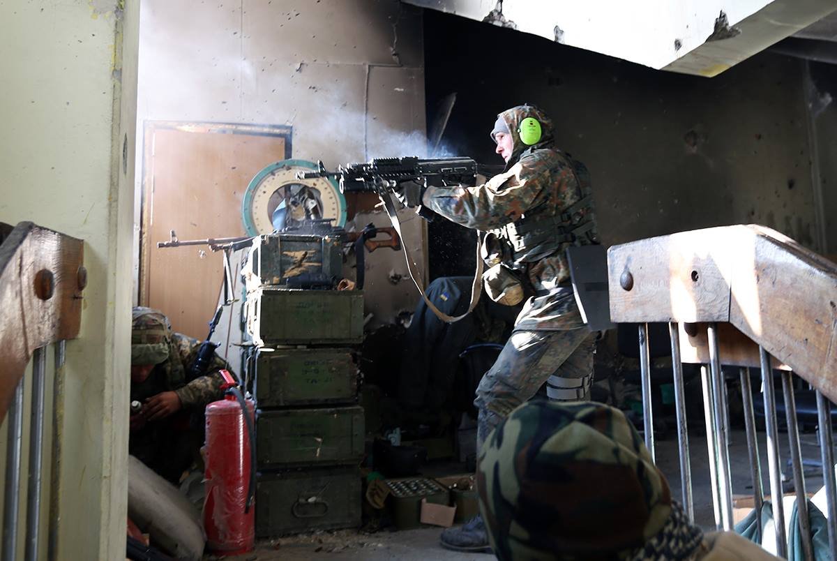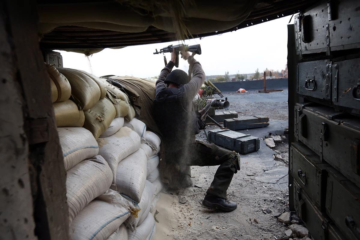Украинский доброволец из Правого Сектора Валерий Чудновский ведет бой на окраине Донецкого Аэропорта.