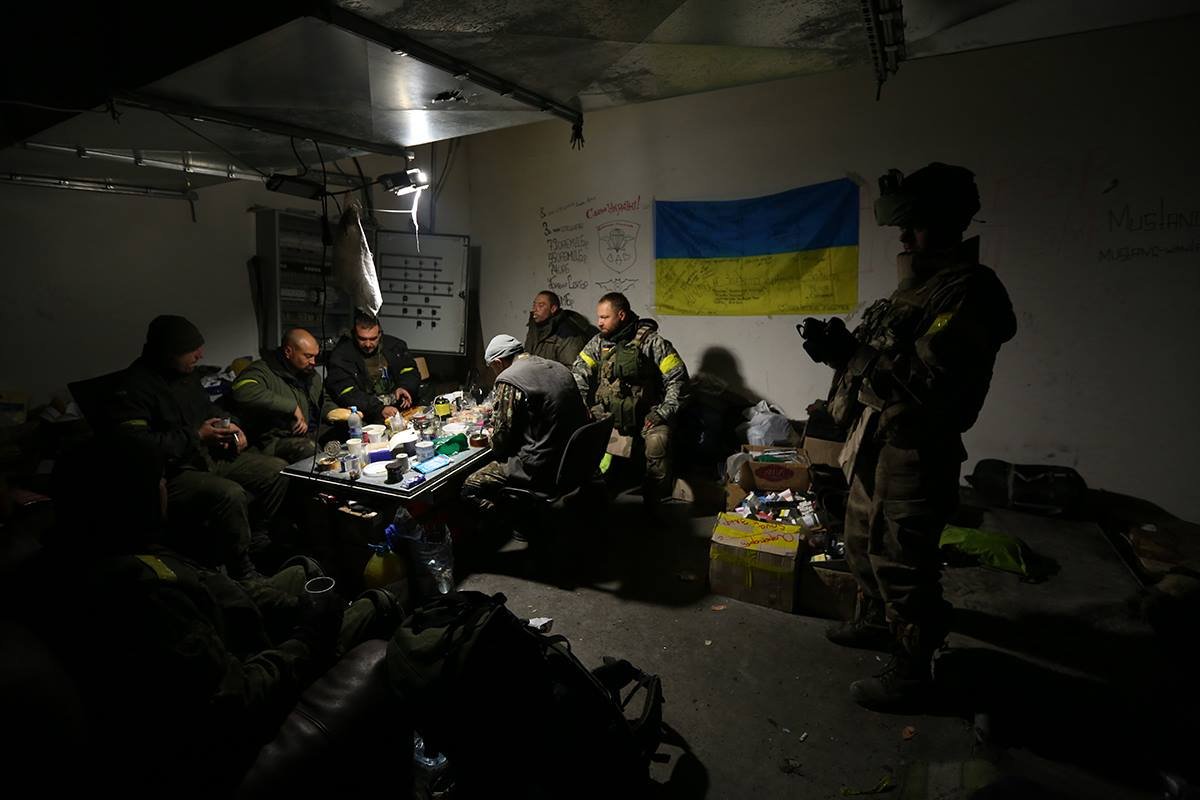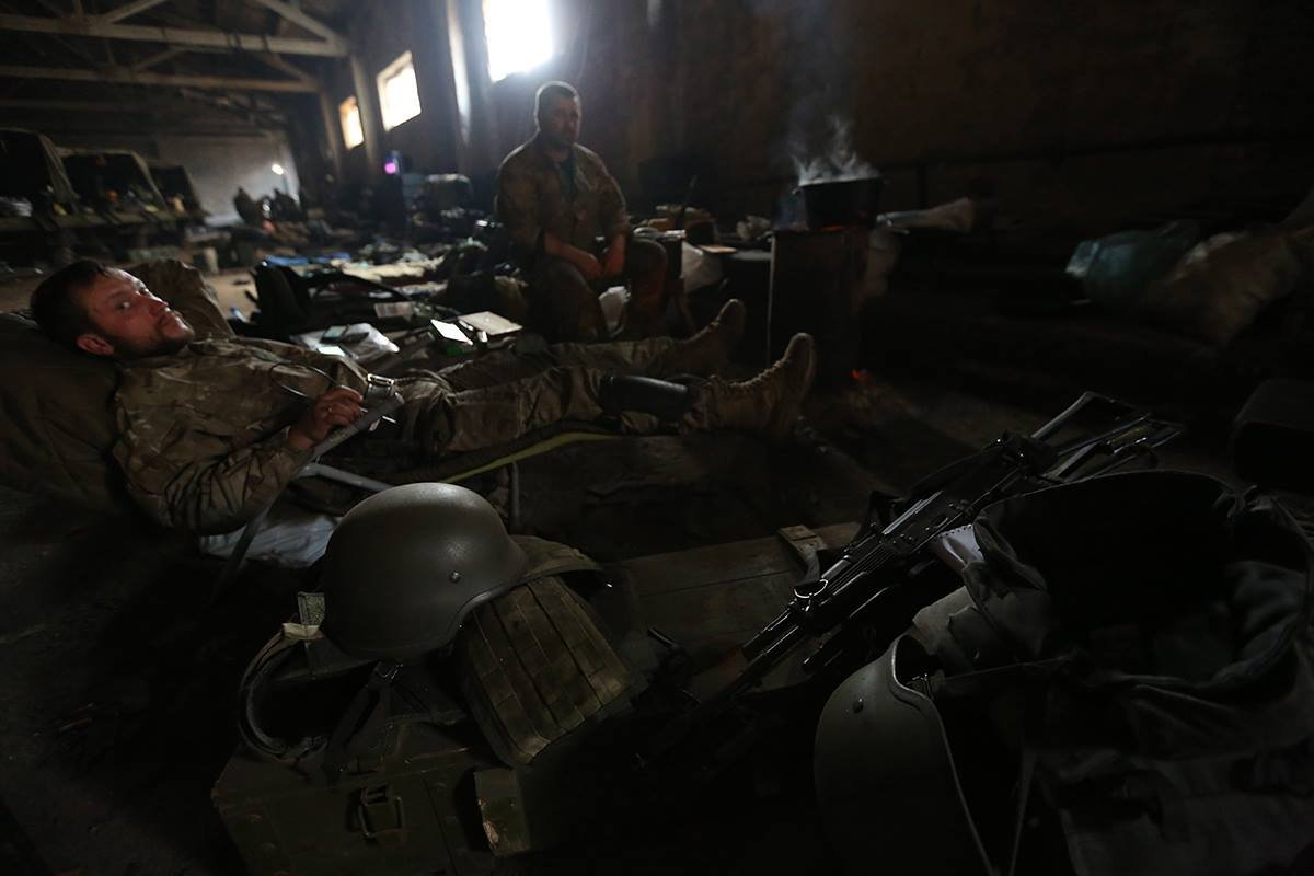 Украинские солдаты отдыхают между боями на окраине Донецкого Аэропорта.