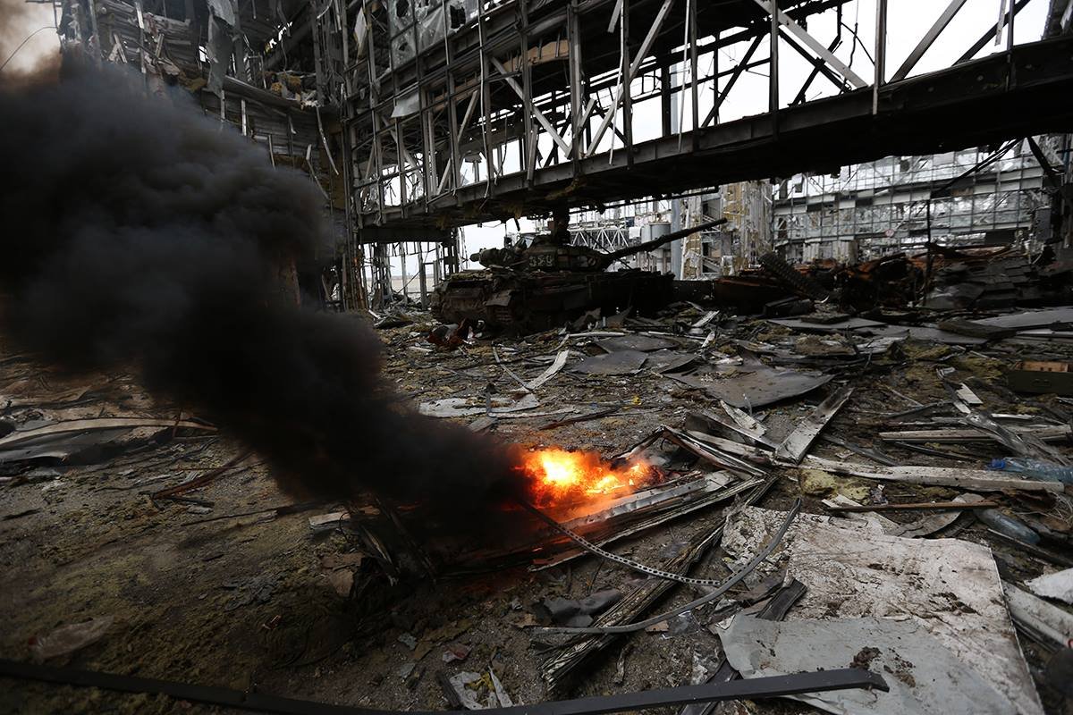 Разгрузка бронеколонны под огнем в Новом Терминале Донецкого Аэропорта.