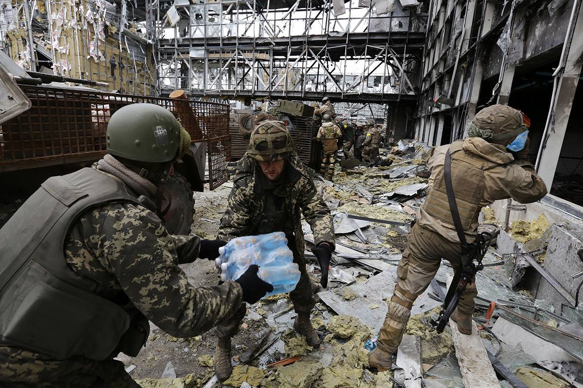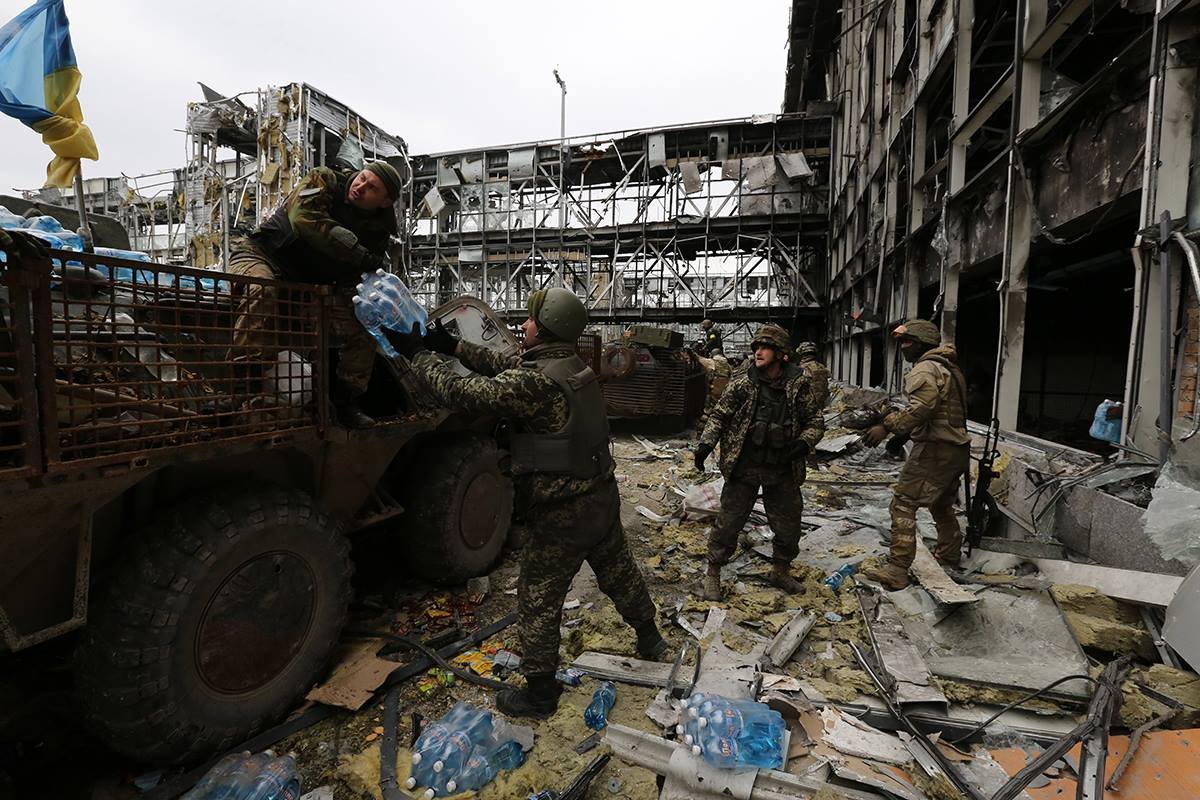 Украинские десантники разгружают транспорт в Донецком Аэропорту.