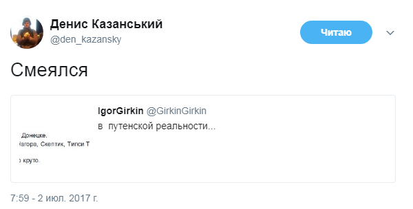 "В путенской реальности..." - пишет пользователь Twitter’а с никнеймом GirkinGirkin.