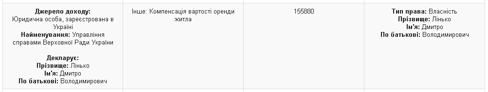 В то же время, ни жилья в пользовании или аренде, ни расходов на аренду Линько не задекларировал. Поэтому непонятно, на каком основании он получил компенсацию за аренду жилья – в среднем 13 тысяч гривен (эквивалент 500 долларов) в месяц.