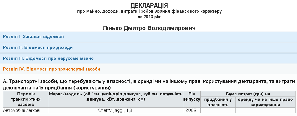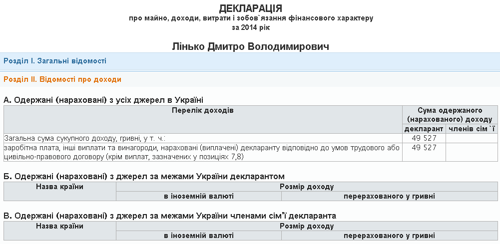 Получается, что нардеп Линько смог прожить на 128 тысяч гривен в течение трех лет. Это в среднем по 3,5 тысячи в месяц. Причем в 2013 году он вообще не задекларировал никакого дохода.