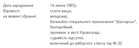 Согласно официальной биографии на сайте парламента, Дмитрий Линько родился в 1987 году в Кировограде. А перед избранием в парламент служил в милицейском батальоне "Шахтерск":