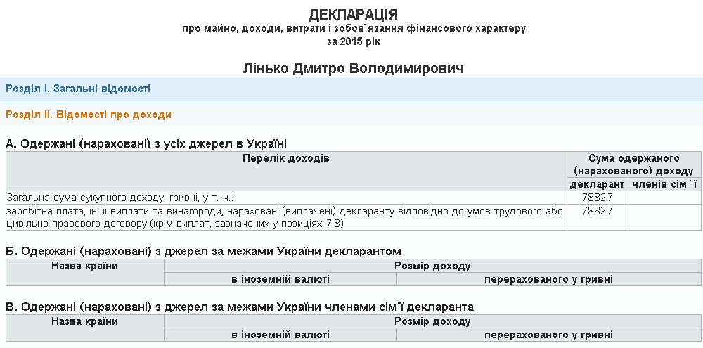 Как видим, после избрания нардепом у семьи Дмитрия Линько появились активы из неизвестных источников на сумму около 4 миллионов гривен. И это при задекларированных доходах за 2013 – 2015 годы всего 172 тысячи.