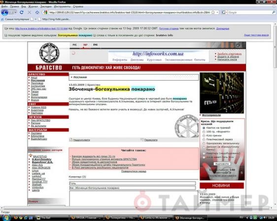 Когда инцидент завершился, в течение следующего часа у Дмитрия Линько в блоге появилось сообщение, что вот наконец наказан "збочинець та богохульник Анатолій Ульянов, відомий в інтернеті своїми антихристиянськими опусами". При этом было также упомятнуто "до новых встреч". Дебилизм ситуации в том, что это сообщение появилось на официальном сайте "Братства", что было достаточно глупо с их стороны. Несмотря на то, что они его быстро удалили, через кэши Гугла можно увидеть как на сайте у них всё это размещалось. Я связываю первый и второй инциденты - в обоих случаях в них принимал участие Дмитрий Линько и партия "Братство".