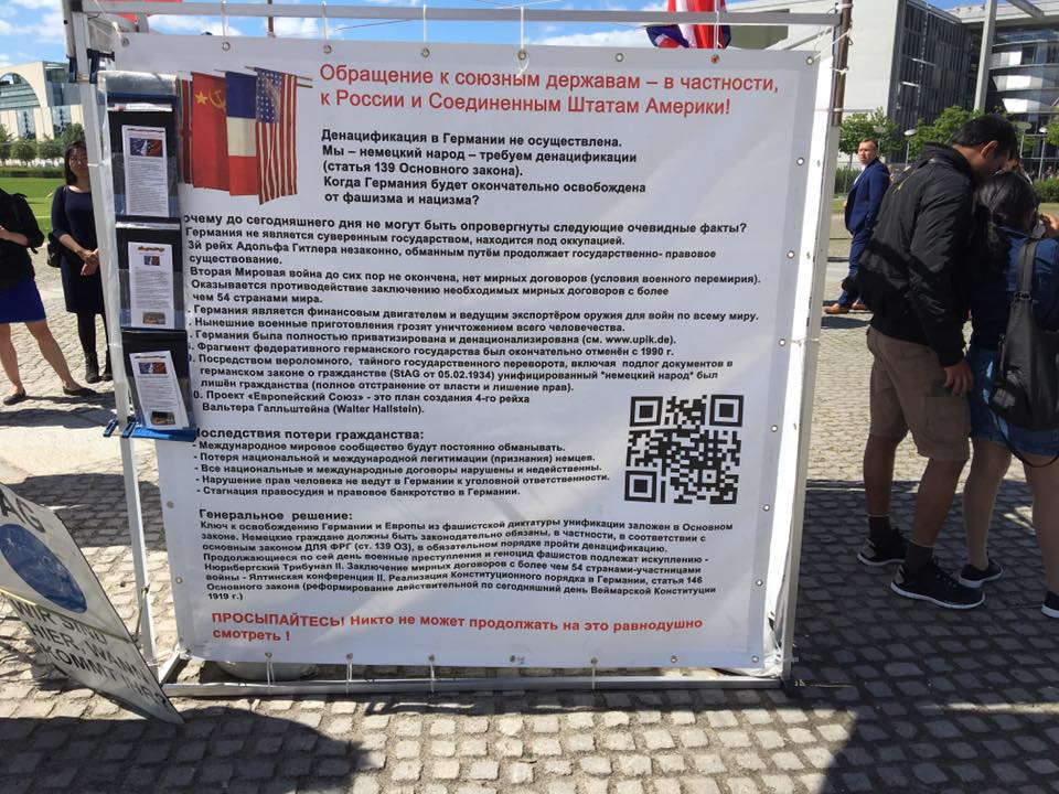 «Возле Рейхстага наткнулся на «ватный» митинг. Смотрю, колорадский флаг, флаг РФ. Думал там что-то про Украину, а это местные. Шизофреничность акции настолько зашкаливала, что я так до конца и не понял сути требований этих людей. Похоже, они считают, что до сих пор живут в Третьем Рейхе и обращаются за помощью к России и США», — высмеял действия этих людей журналист.