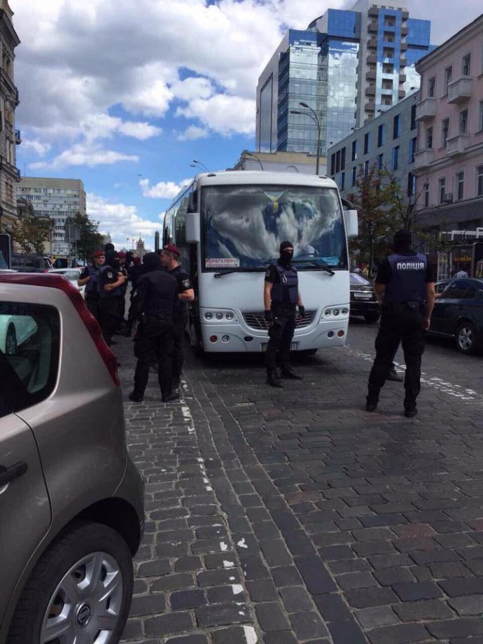 Как сообщила «Украинской правде» пресс-секретарь киевской милиции Оксана Блыщик, задержана «группа лиц — 2 автомобиля и автобус». Операция проводится совместными усилиями полиции и с работников СБУ.