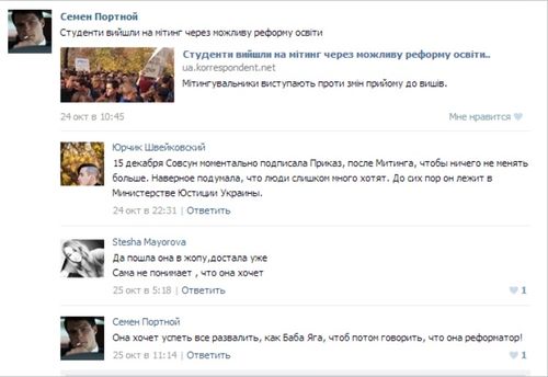 Можемо говорити скільки завгодно, але студенти, як ніхто інший відчувають на собі наслідки провальних призначень та непрофесійного керівництва. «Ломать не строить» ось так коментують студенти роботу одіозної Інни Совсун.