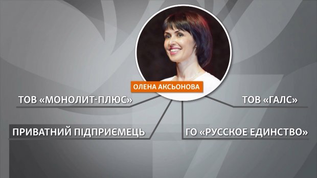Сейчас первая леди Крыма – основательница или руководитель не менее четырех предприятий. Это "Монолит-плюс" и "Галс", которые существовали до событий 2014 года. После них жена Аксенова зарегистрировалась в России как частный предприниматель и основала общественную организацию "Русское единство" и стала известной в Крыму общественным деятелем.