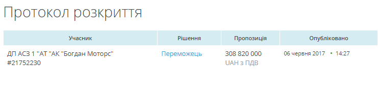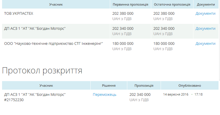 А победителем, по традиции, стал "богдановский" завод с предложением более 202 миллионов гривен. Причем с ООО "Укрпастех" "Автоскладальный завод №1" оказался также связанным.