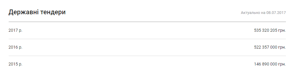 В итоге 318 миллионов разыграли между тремя компаниями. Победителем вышло дочернее предприятие "Автоскладального завода №1" корпорации "Богдан". Причем, только в этом году данная компания уже навыигрывала тендеров на 535 миллионов гривен, в прошлом - на 522 миллиона гривен.