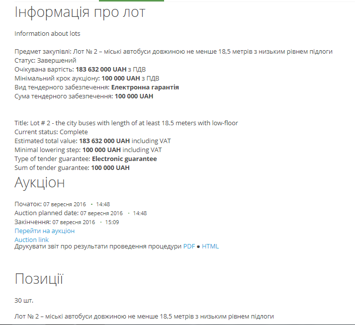 Во втором лоте предлагалось 183,632 миллиона гривен за 30 автобусов длиной не менее 18,5 метров.