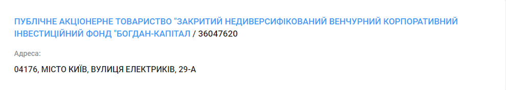 Более 23% акций - за ПАО "Закрытый недиверсифицированный венчурный корпоративный инвестиционный фонд "Богдан-капитал", который связан с Олегом Гладковским.