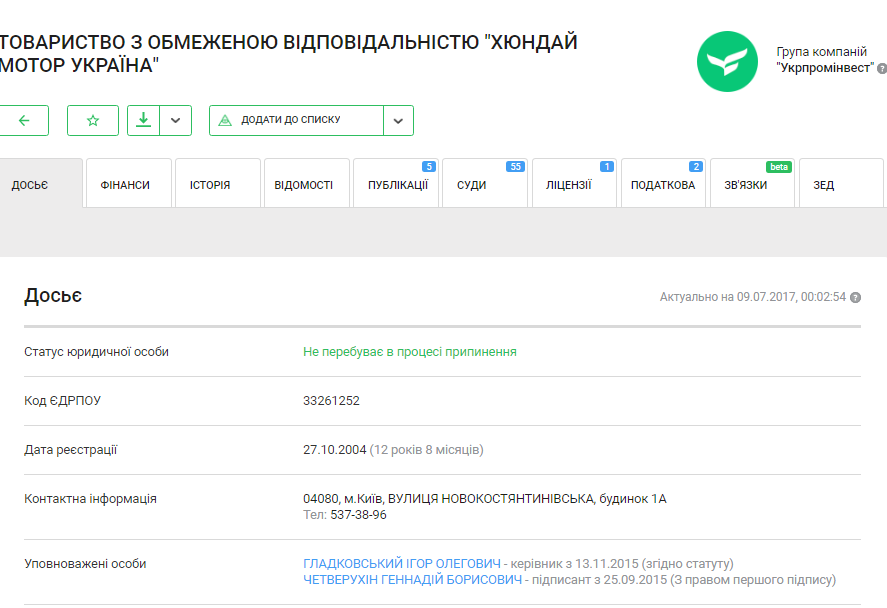 А 13% акций корпорации "Богдан" сосредоточено у компании "Хюндай мотор Украина", руководителем в которой значится, очевидно, сын Олега Гладковского Игорь Гладковский. К слову, среди учредителей ООО "Хюндай мотор Украина" три кипрских офшора.
