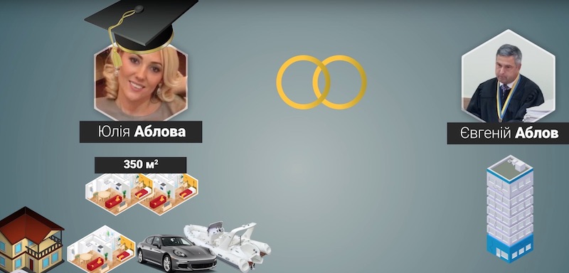 Судья Аблов жаловался журналистам, что он голый и босый, у него нет теперь ни машины, ни квартиры, и он пять лет не был за рубежом. Сей час он проживает в конспиративном общежитии НАБУ. Но при этом у его супруги Юлии Абловой в Одессе были две квартиры на 350 кв.м., зарегистрированный на мать дом и зарегистрированная на сына квартира, автомобиль Porsche и скоростной катер. Юлия тоже судья, а в прошлом – прокурор с открытым производством за незаконное обогащение.